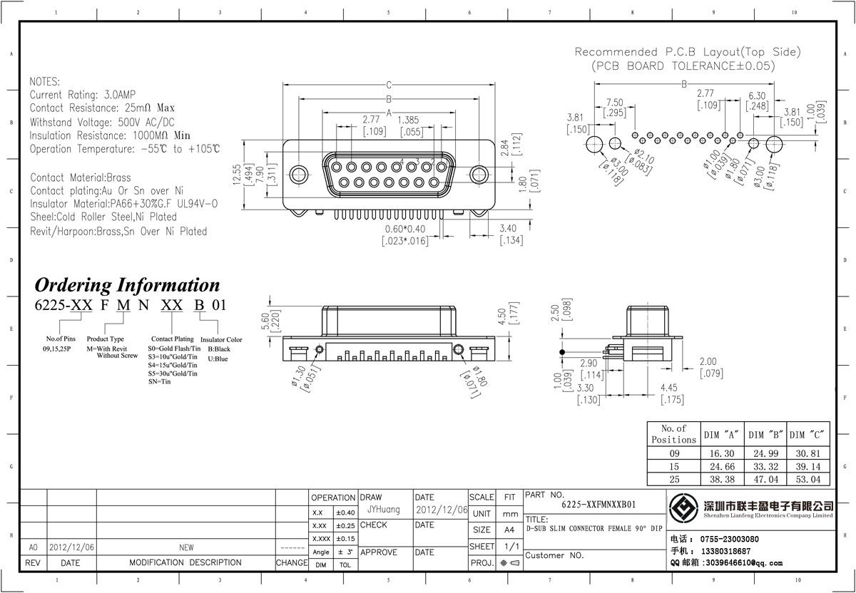 技术参数:额定电流:3.0amp电流电阻:25mΩ最大绝缘电阻:1000mΩ min 承受电压:AC 500V /分钟工作温度:55﹣℃+ 105℃接触材料:黄铜触点电镀金或锡镍绝缘体材质:聚酯(UL94V-0)标准:PBT的+ 30%广发壳:冷轧辊钢、镀镍黄铜,Revit /鱼叉:锡镍镀螺丝材质:黄铜.