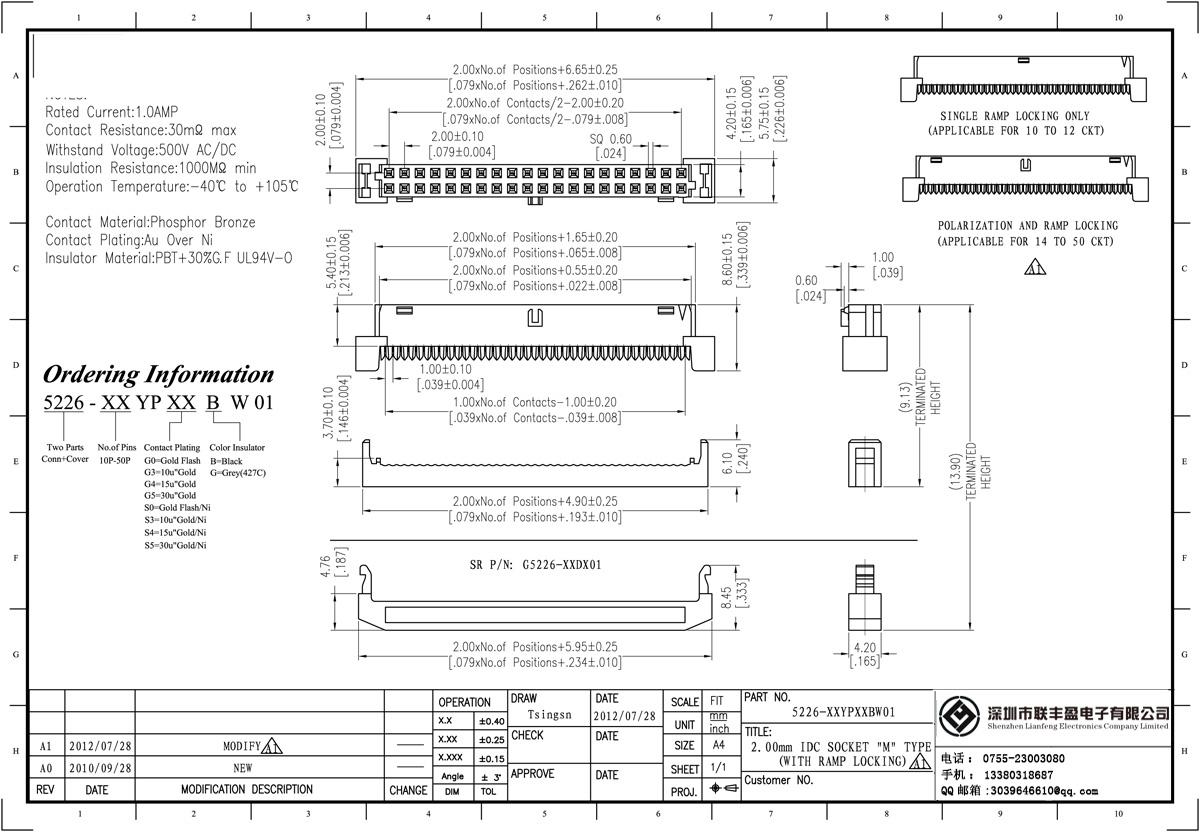 678cc彩票 技术参数:额定电流:1.0amp电流电阻:20mΩ最大绝缘电阻:1000mΩmin耐压:1000V AC /分钟工作温度:40﹣℃+ 105℃接触材料:黄铜触点电镀金或锡镍绝缘体材质:聚酯(UL94V-O)标准:PBT的+ 30% GF