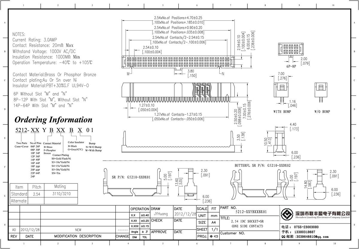 技术参数:额定电流:3.0amp电流电阻:20mΩ最大绝缘电阻:1000mΩmin耐压:1000V AC /分钟工作温度:40﹣℃+ 105℃接触材料:磷青铜或黄铜触点电镀金/锡镍绝缘材料:聚酯(UL94V-O)标准:PBT的+ 30% GF