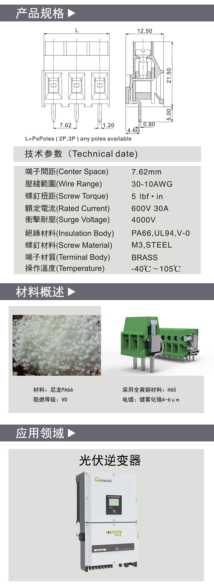 欧式接线端子7.62间距螺钉式600V 30A 02P-03P拼接