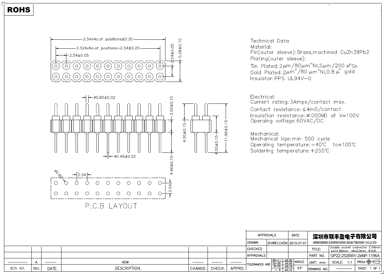 产品简介品名:排针规格:插件/直式180°间距:2.54mmPIN数:2-40PIN备注:圆孔排针系列