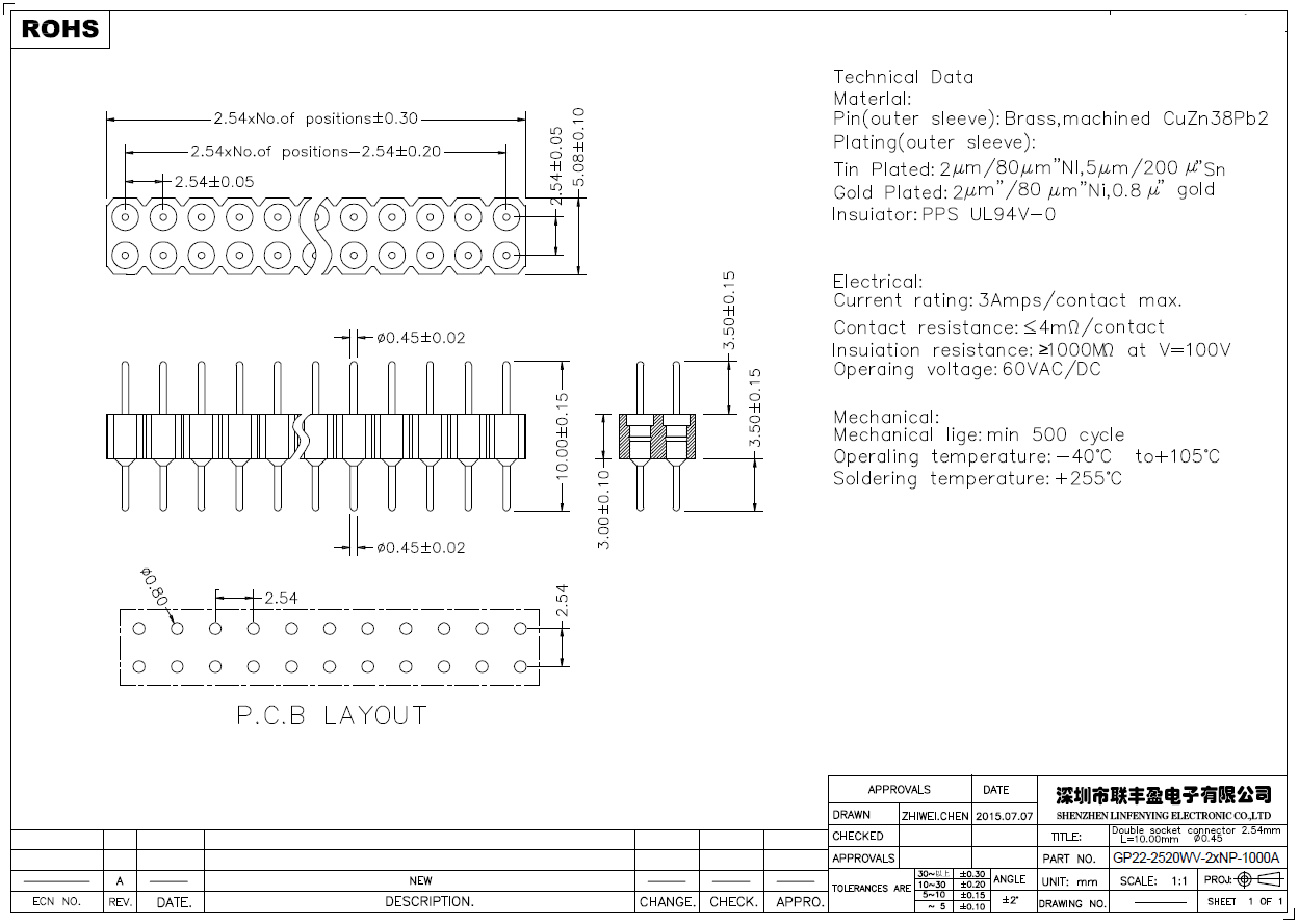 产品简介品名:排针规格:插件/直式180°间距:2.54mmPIN数:2-40PIN备注:圆孔排针系列