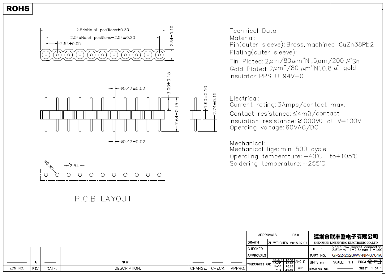 产品简介品名:排针规格:插件/直式180°间距:2.54mmPIN数:2-40PIN备注:圆孔排针系列