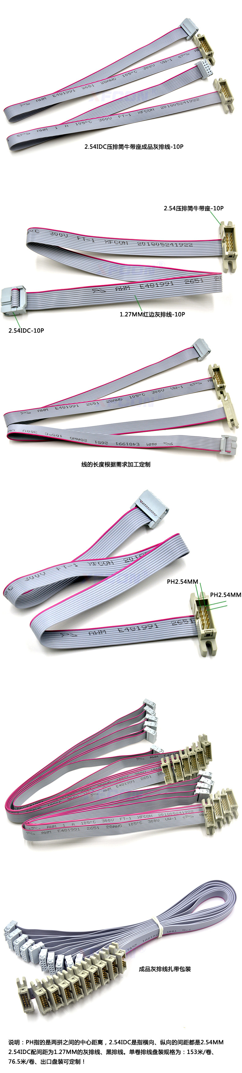 排线颜色:灰色带红边带印字(另有黑色、黄色以及红色,需订做!)