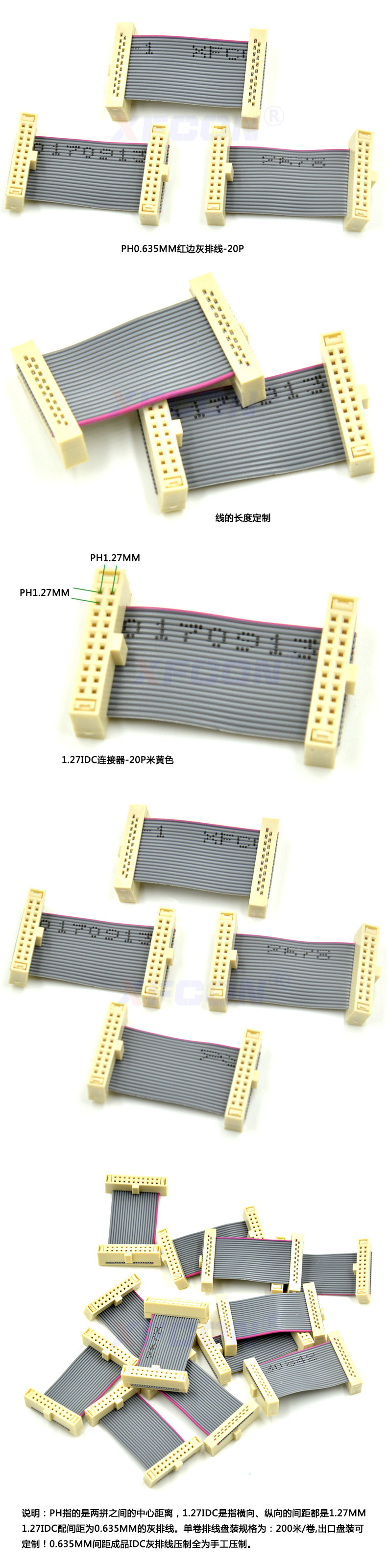 灰排线间距:0.635MM (另有1.0MM 1.27MM 2.0MM 2.54MM)