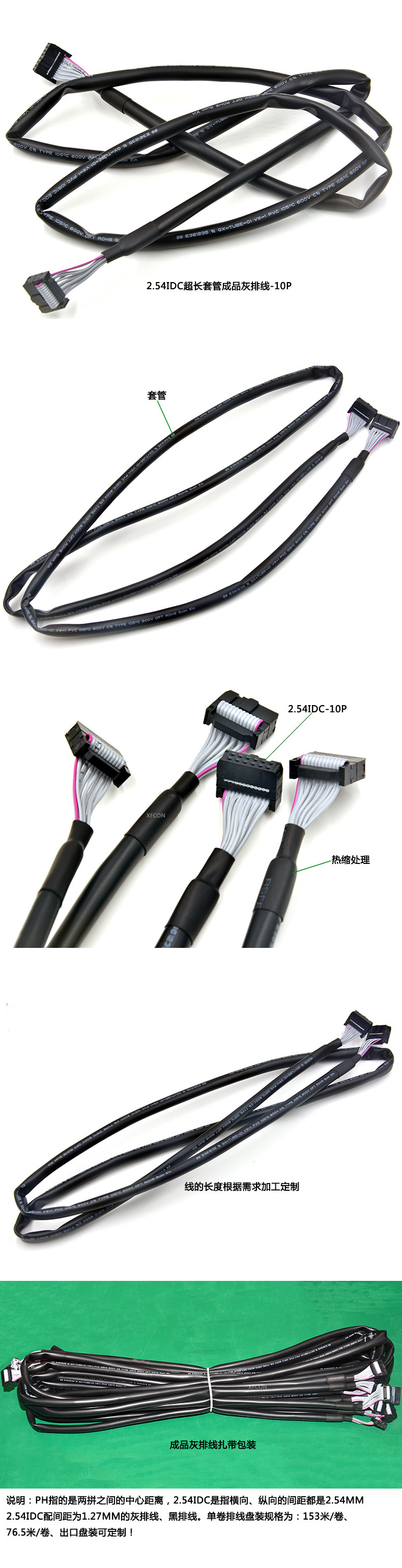 产品名称:2.54IDC超长套管成品灰排线-10P