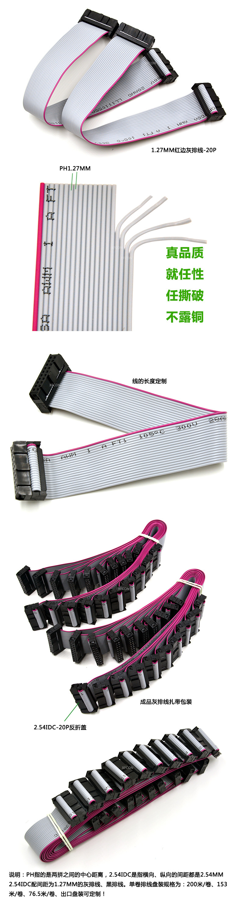 灰排线间距:1.27MM (另有:0.635MM 1.0MM 2.0MM 2.54MM)