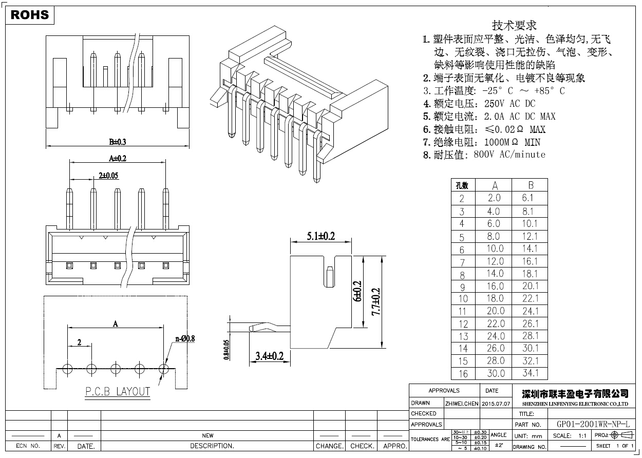产品简介品名:线对板连接器规格:卧式/插件90°间距:2.00mmPIN数:2-18PIN