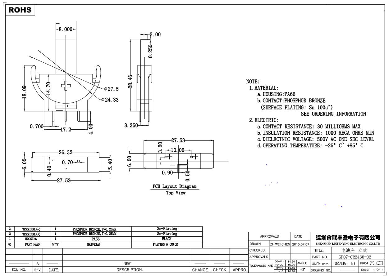 塑胶材质:1A=PBT BLACK ,1B=PA66 BLACK ,2A=PPA BROWN ,2B=PPA BLACK ,3A=PPS BROWN ,3B=PPS BLACK ,4A=LCP WHITE ,4B=LCP BLACK