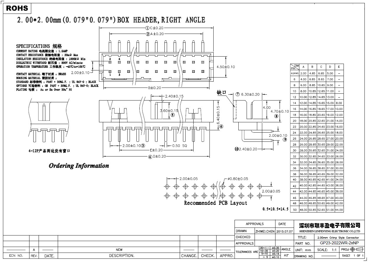 产品简介品名:简牛规格:插件/卧式90°间距:2.00mmPIN数:6-50PIN备注:简牛连接器系列