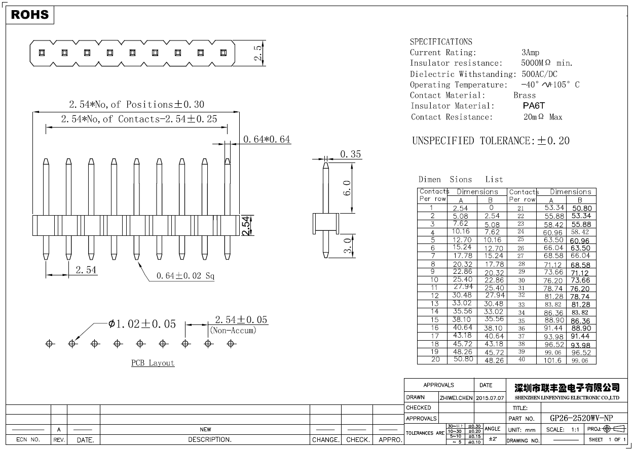 产品简介品名:排针规格:插件/直式180°间距:2.54mmPIN数:2-40PIN备注:排针系列