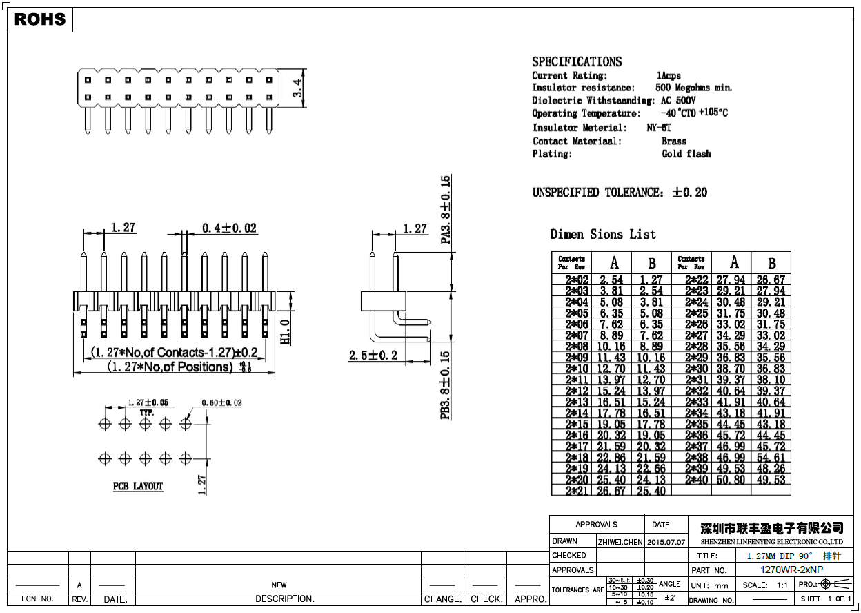 间距:1.27mm