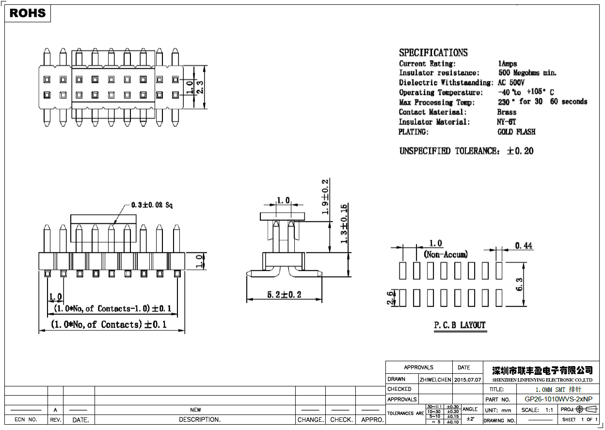 产品简介品名:排针规格:贴片/立式180°间距:1.00mmPIN数:2-40PIN备注:排针系列