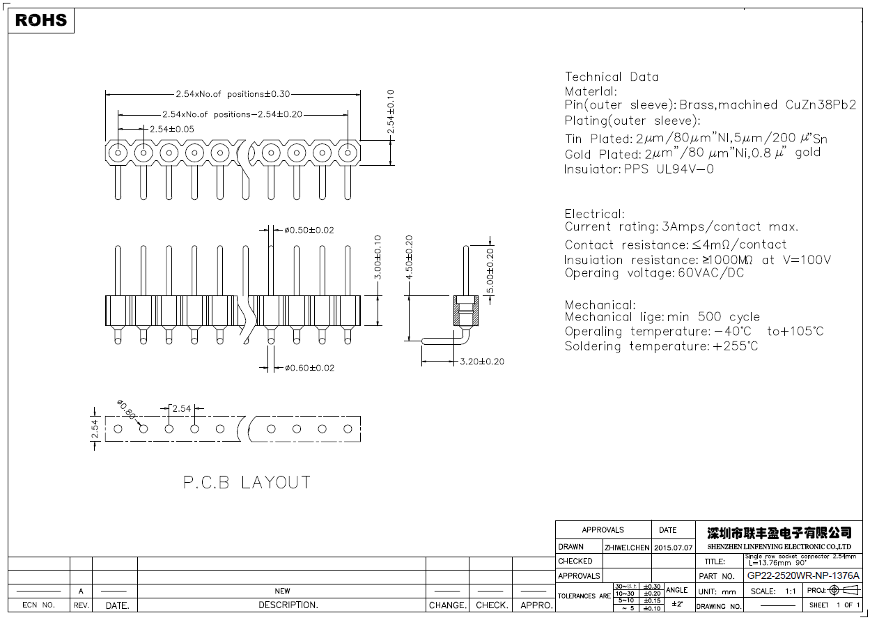 产品简介品名:排针规格:插件/卧式90°间距:2.54mmPIN数:2-40PIN备注:圆孔排针系列