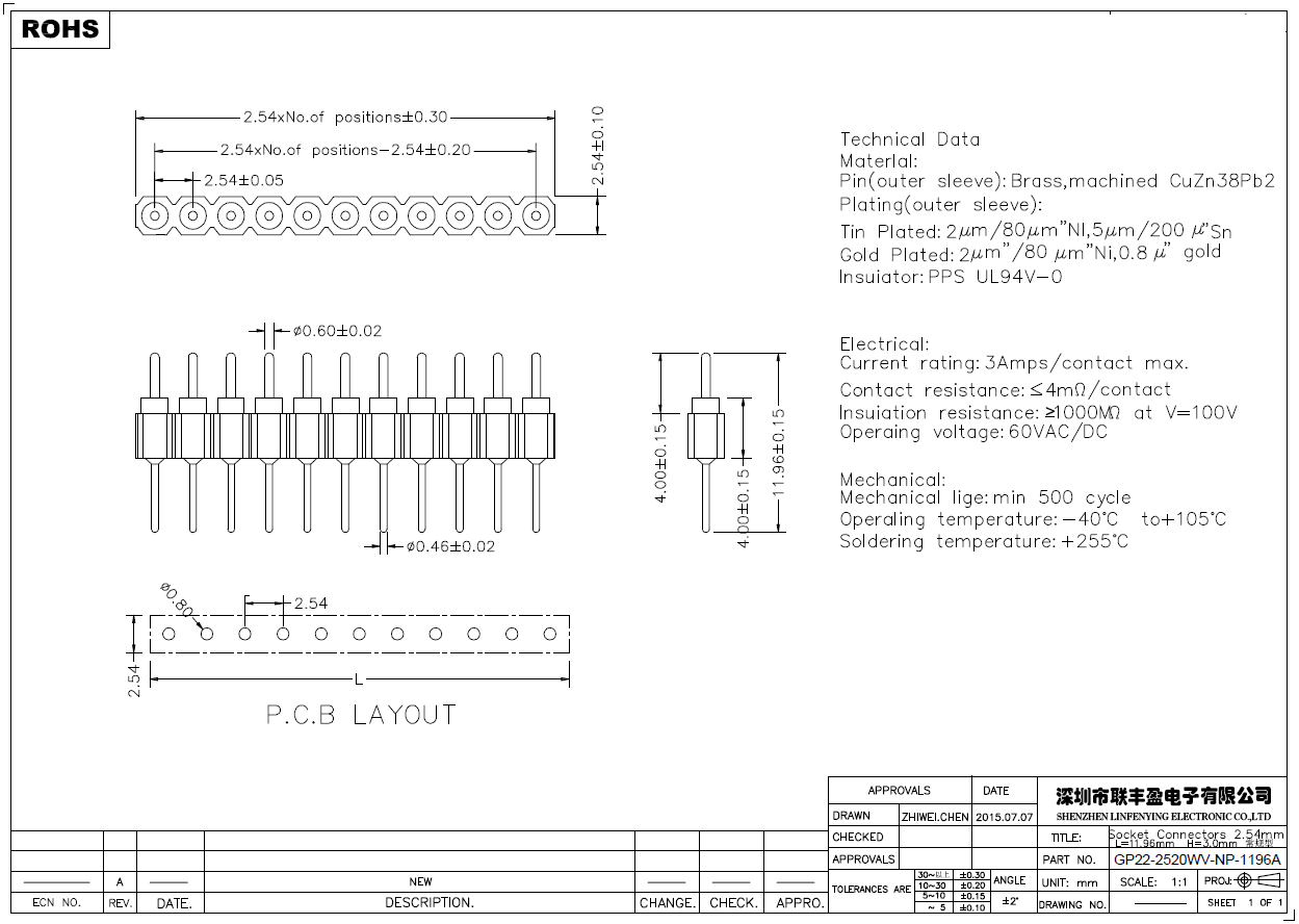 产品简介品名:排针规格:插件/直式180°间距:2.54mmPIN数:2-40PIN备注:圆孔排针系列