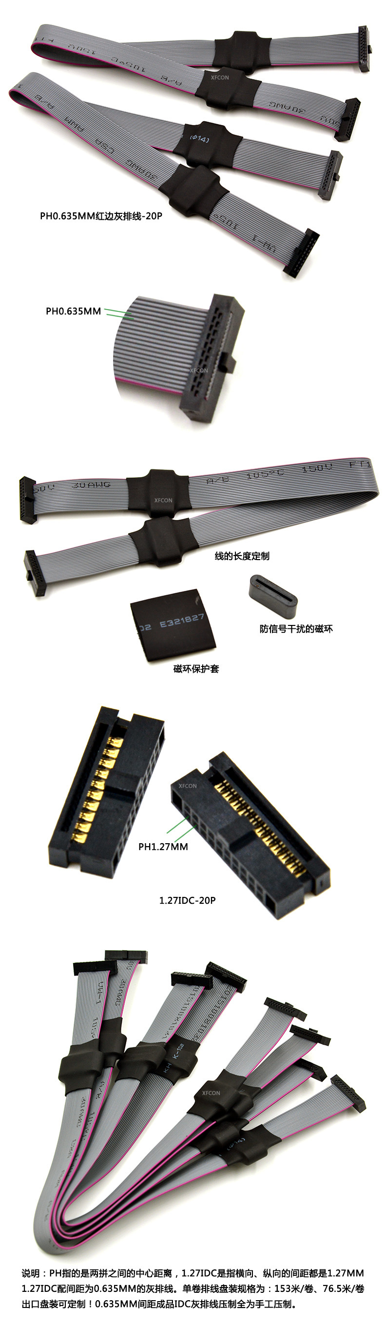 灰排线间距:1.27MM  (另有:0.635MM  1.0MM 2.0MM 2.54MM)