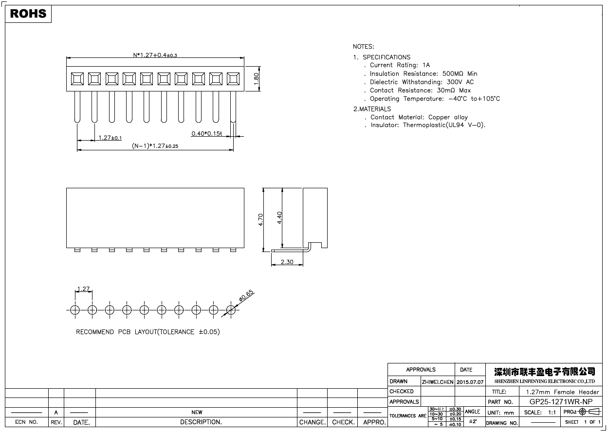 产品简介品名:排母规格:插件/90°间距:1.27mmPIN数:2-50PIN备注:排母系列