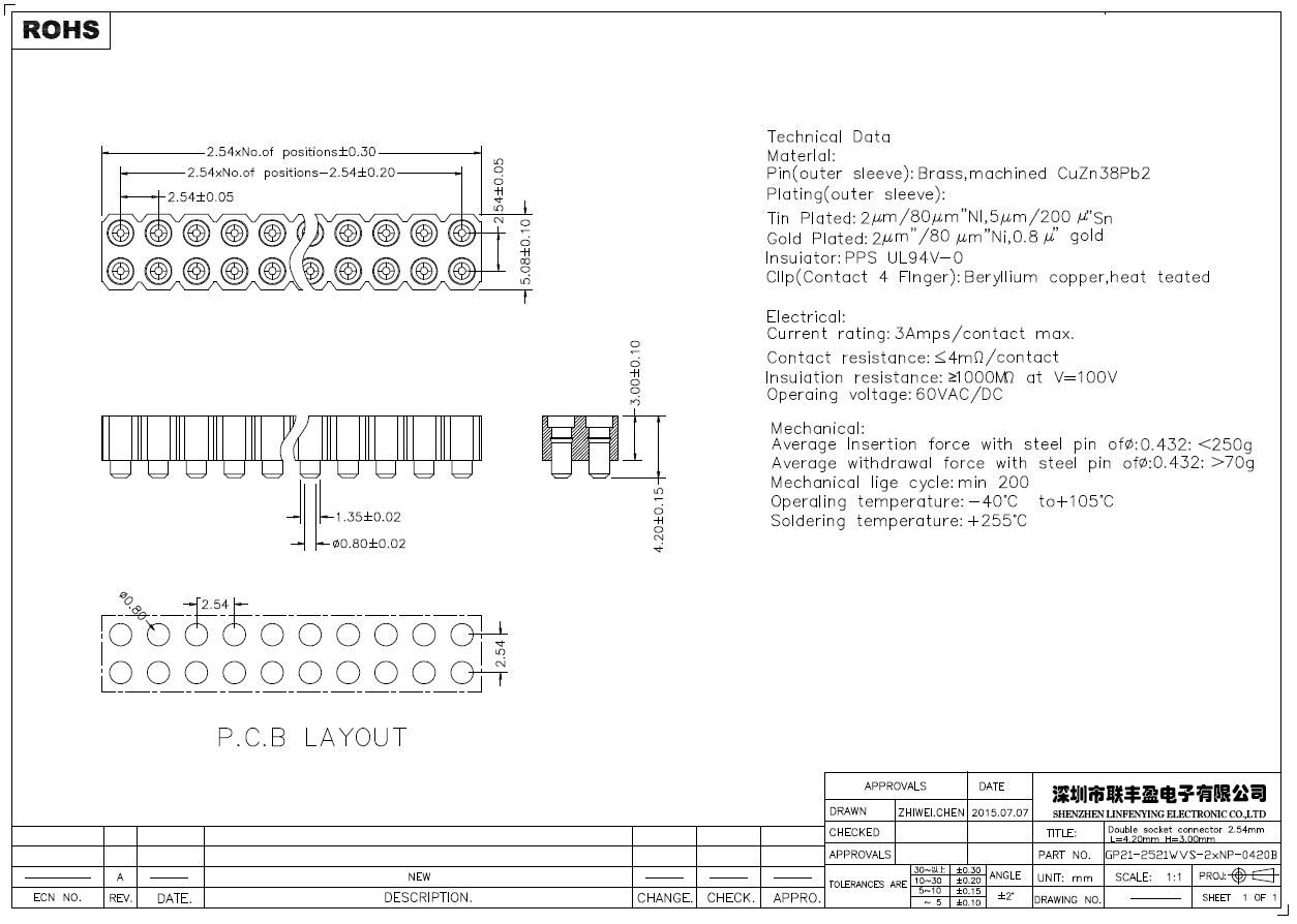 产品简介品名:排母规格:贴片/立式180°间距:2.54mmPIN数:2-40PIN备注:圆孔排母系列