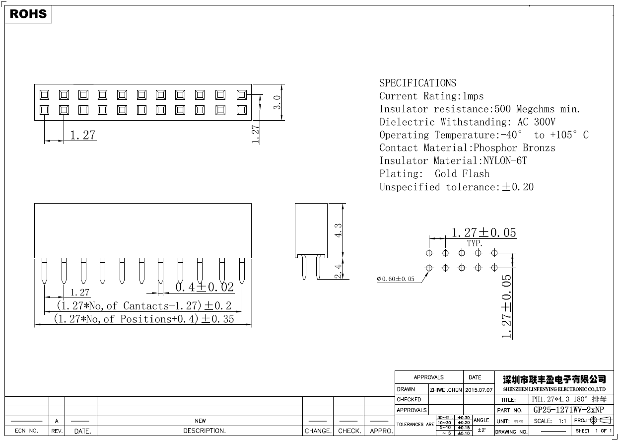 产品简介品名:排母规格:插件/直式180°间距:1.27mmPIN数:2-50PIN备注:排母系列