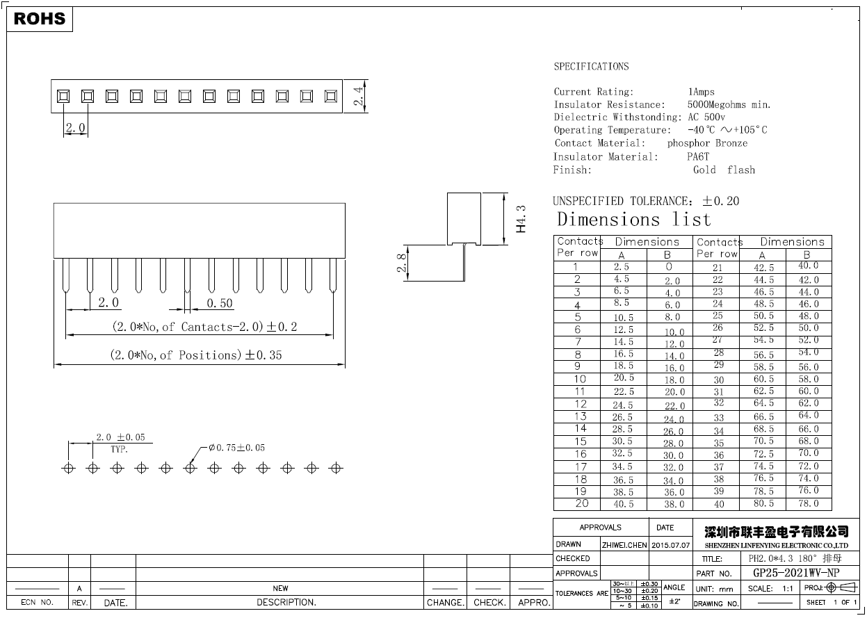 产品简介品名:排母规格:插件/直式180°间距:2.00mmPIN数:2-40PIN备注:排母系列