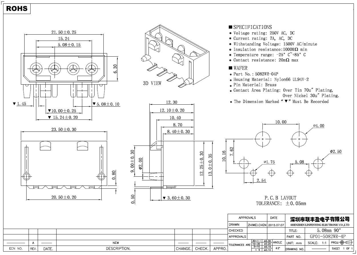耐压 : 1500V AC/minute